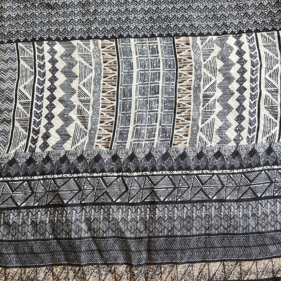Light fabric scarf that can be worn many ways - wrap it around neck, as a shirt, or as a skirt.