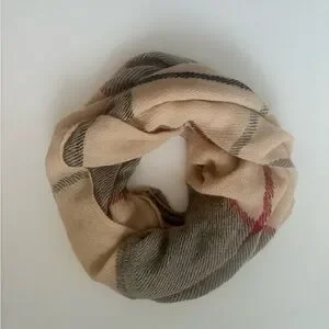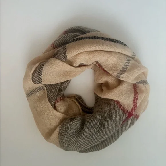 Wrap yourself in style with this elegant beige and grey scarf. Perfect for casual wear.