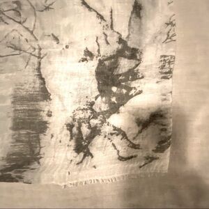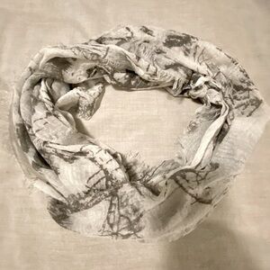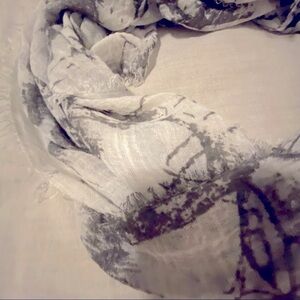 This beautiful scarf is a gauzy cotton with fringe ends.
