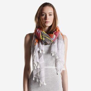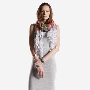 can work as scarf, shawl over the shoulders or even over bathing suit. Versatile!