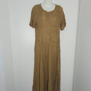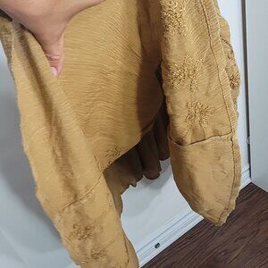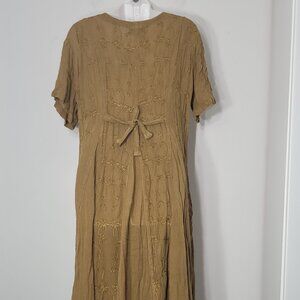 Scarlet Women's Vintage Bohemian Burnt Yellow Embroidered Floral Short Sleeve Tie Back Maxi Size Medium