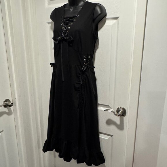 SCARLET DARKNESS Women's V Neck Sleeveless Midi Dress Lace-Up Ruched Drawstring Camisole Dresses Black size large. New - never worn. polyesther & cotton