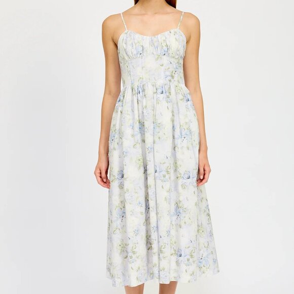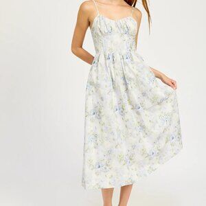 Tie Back Corset Detail Midi Dress 100% Cotton