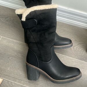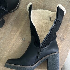 Scarpini Black Faux Leather Suede Boots Mid Calf Block Rubber Heel EU Size 37