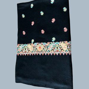 This wool and silk-blend scarf is handwoven and is individually stitched with delicate and intricate detail. Each piece is a unique work of art and is made by skilled Kashmiri artisans and conveys its own story.