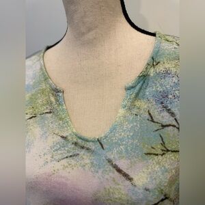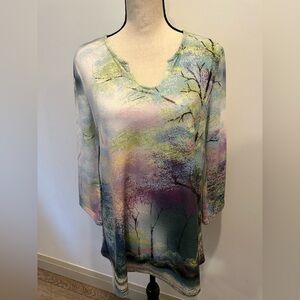 Embrace elegance with this scenic print sweater, featuring a blend of soft colors. Perfect for adding a touch of art to your wardrobe. Reposh! Just want it to go to a good new home.