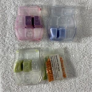 Lot of Scentsy wax bars in orange, blue, and green. Includes Autumn Sunset, Blue Hyacinth, and Pear-fect Day scents.
