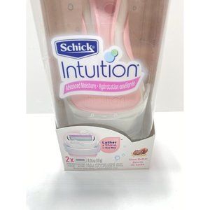 The Schick Intuition Advanced Moisture razor with shea butter moisturizes and softens skin. It’s the first and only razor system that lathers, shaves and moisturizes during shaving - in one easy step - so there’s no need to use shave gel. It also features a 4-blade pivoting head to glide smoothly along the contours of your legs and body. Our Skin Conditioning Solid, with new moisturizing ribbons, moisturizes dry skin during shaving and will leave skin smooth – and you looking radiant. It simplifies your shave and cares for your skin.