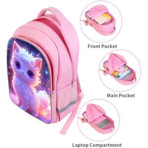 Large Capacity:This toddler backpack measures approximately 12.2*6.7*17.3 in;One main compartment, front pocket, two side pockets. Roomy to fit laptop, iPad, text books, lunch box, pencil case, water cups, umbrellas etc.Fit your kids'daily essential needs