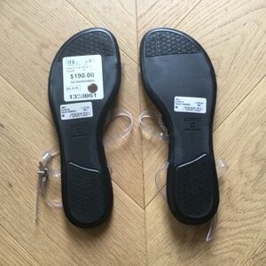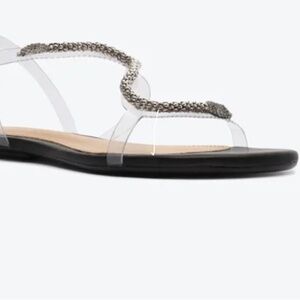 Love flat sandals but still want the bling?! These sandals 🩴 have beautiful details A serpentine rope chain trimmed in tiny crystals curves gracefully up a sandal crafted with a clear upper and a gleaming flat sole. • Slip-on style with adjustable, buckled heel strap • Synthetic upper, lining and sole • Made in Brazil • Women's Shoes