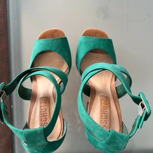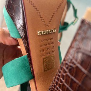 Schutz Heels - Jade with dark brown snakeskin platform