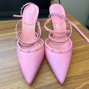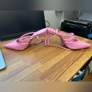 The most insane bubblegum pink!!! Such a sexy feminine shoe. Excellent condition aside from heel flaw where the leather got slightly scrapped noted in picture.