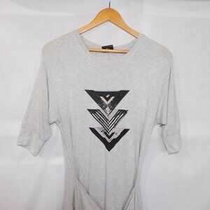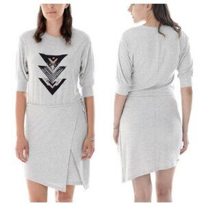 Schwiing Gray Rosita Jersey Faux Wrap 3/4 Sleeve Dress Womens S