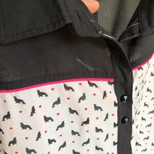 Schwiing Seal Walrus Sheer White Black Tank Blouse Button Down Shirt Women's Med