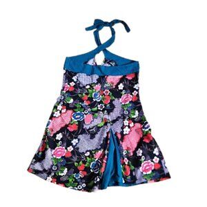 Schwiing black & teal floral halter dress