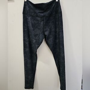 Stylish leggings with a unique graphic design. Gusset in front for movement and comfort. Worn once, washed and put away forever. You can tell by the seams, logo and tag. This is called Acid black tie dye. high waist and curvy in the hips. No picks or pills.