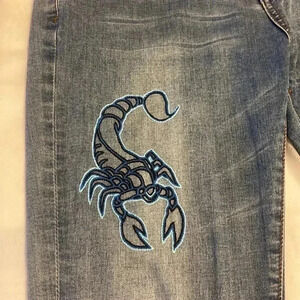 Fancy cotton denim jeans with hand made Scorpion π¦ embroidery