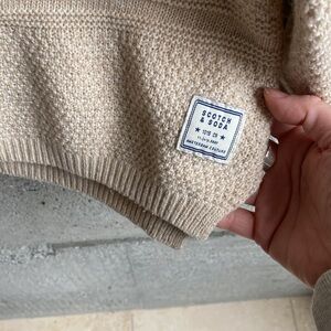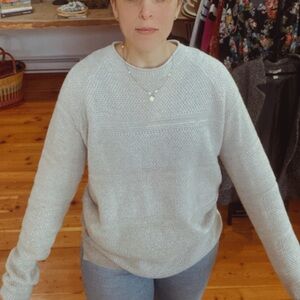 Love the knit pattern on this sweater! It’s been babied and is in immaculate condition. No flaws to note. Previously gently worn by me. I am typically a medium but you can see how the mens large fits for the length and the oversized grandpa fit look.
