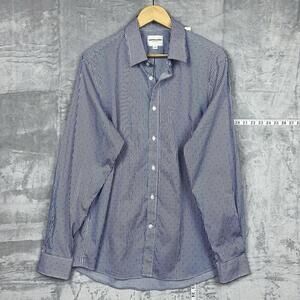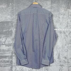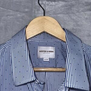 Scotch & Soda Men Blue Stripe Stretch Dress Shirt Size 18 35/36 Red Dots Casual