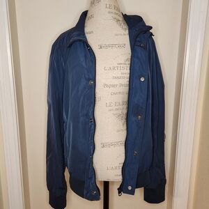 Stretch Ribbed Cuffs and Hem, pop up Collar, patterned inside lining, hidden inside pocket, light stain on the inside (only obvious under bright light), a few scratches and wear to buttons, Size M, Pit-21, Shoulder-18, Sleeve-27, Length-25.