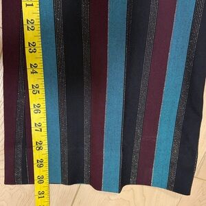 Our new striped flared pants were made to steal the show. These fun pants with glittery accents sare versatile enough to pair with both simple and vibrant tops. They sit comfortably high on the waist with the vertical stripes and flared silhouette working their magic to elongate your leg.