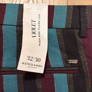Scotch & Soda Violet Glitter Striped Flare Pants, sz 32x30