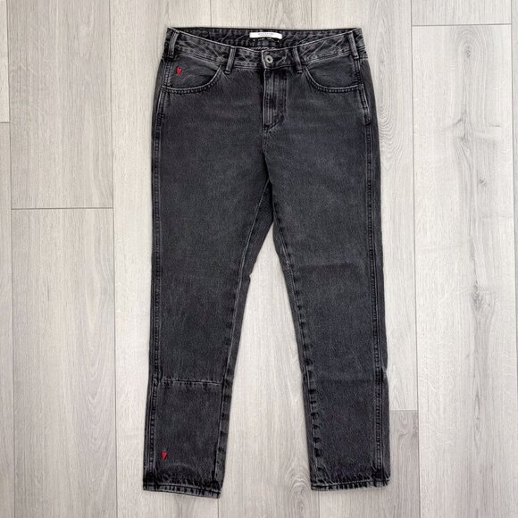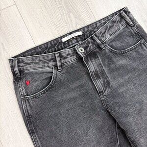 These Scotch & Soda Bandit slim tapered boyfriend jeans are crafted from rigid black-washed denim, featuring charming heart embroidery along the side seams. With a relaxed yet flattering fit, these jeans offer 5-pocket styling and a non-stretch, 100% cotton construction.