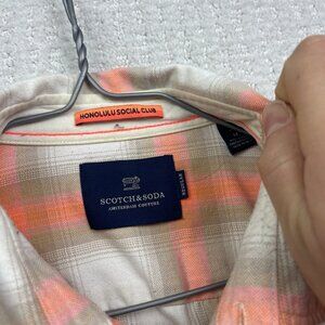 Scotch & Soda x Honolulu Social Club Orange Neon Plaid Button Up Shirt Men Sz M