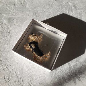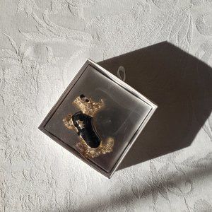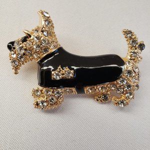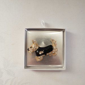 Scottie Dog Brooch. Scottish Terrier. Black enamel, diamond simulants on gold