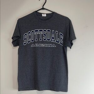 Unisex dark grey ‘Scottsdale Arizona’ Graphic Spell-out Short Sleeve T-Shirt.