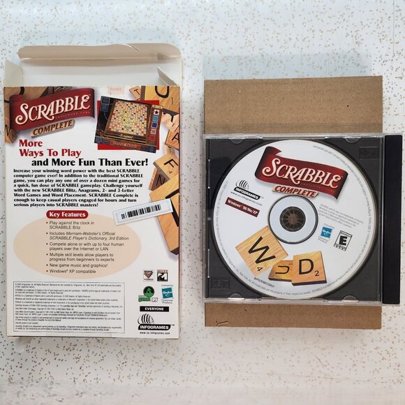 Vintage/Retro Pc game, scrabble complete. Windows 98/XP. Infogrames. May work on modern systems with compatibility settings in place. Overall Great preloved condition. Disc is excellent condition.