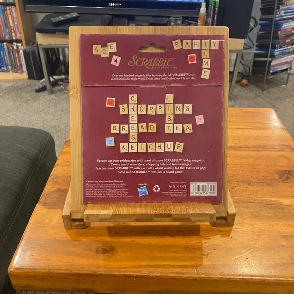 Scrabble fridge magnets for fun word play. Includes 112 magnets. Perfect for the fridge.