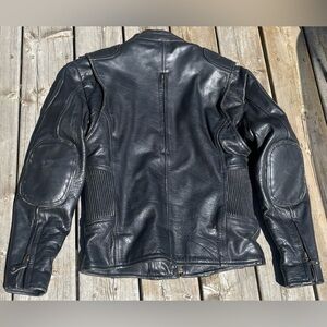In perfect condition. Has padded shoulders and elbows. Front and back zippered air vents and removable inside lining for colder/warmer days.