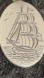 These vintage-style dangle earrings feature an oval pendant with a finely etched sailing ship design. The back of each earring is stamped