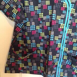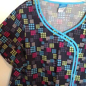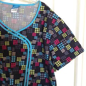 Scrub H.Q Top Women's Size 3XL Black Multicolor Uniform Nurse Medical