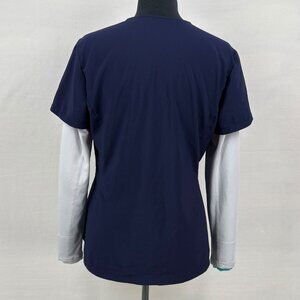 Scrub Kulture Womens Medium Purple Pink Trim V Neck Scrub Top Uniform Pockets
