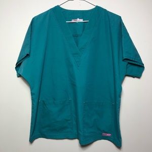Scrub Lovers Scrub Top. 2 front slip pockets. Size large. Armpit to armpit 22”, length 24”. In very good condition.