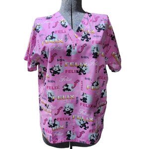 Scrub Nursing Top Lot of 2 Womens Med. Tinkerbell & Felix the Cat V Neck
