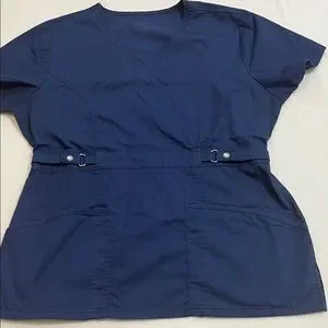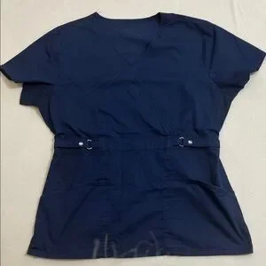 This elegant navy blue scrub top offers a chic and comfortable fit, perfect for any day on the job. It’s basically in brand new condition, the tag is just faded.