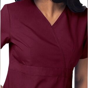 Scrub Top Maroon Sze 3x Empire Waist Slimming V-Neckline Mock Wrap Sivvan Amazon
