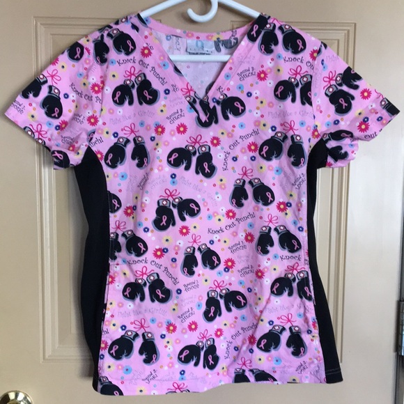 Good condition with stretchy sides for comfort. Pit to pit 21”. Length 26”. Would suit mammo tech.
