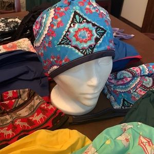 I have a stole pile of new scrub caps for sale. This ad is for the blue printed one with navy blue trim, I have two of them. If you bundle I can add a discount. Thanks for shopping.