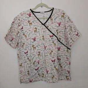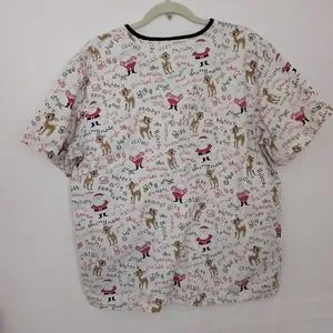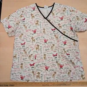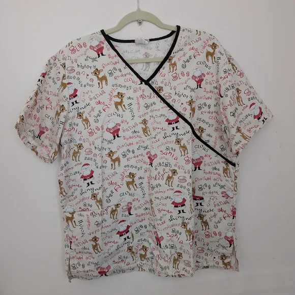 Rudolph Christmas scrub top. sizing has rubbed off on tag but it is approx 24 inches across, either XL or XXL