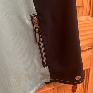 Scrubletics V Neck Scrub Top in size XS. Light blue and navy blue in colour. Only worn a handful of times so it’s in good condition. Has zipper pockets on each side and a little pocket on one sleeve.