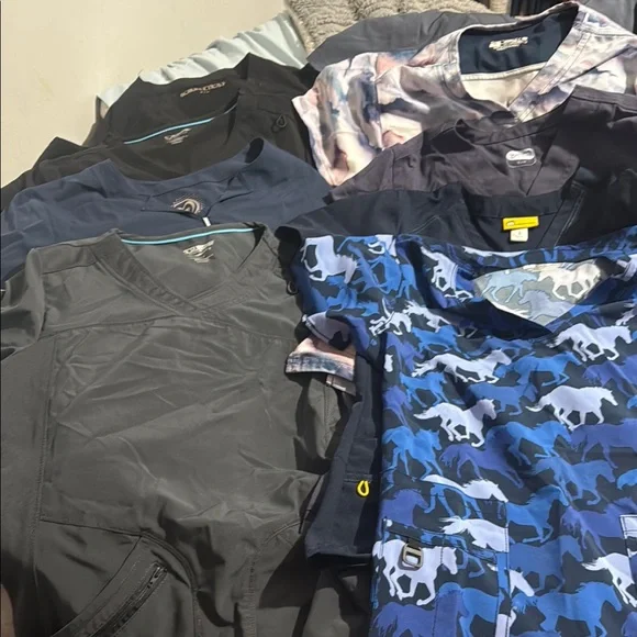 Perfect for hospital, psw, or doctors offices. I no longer work as a psw so I have 9 size small. All in excellent condition.