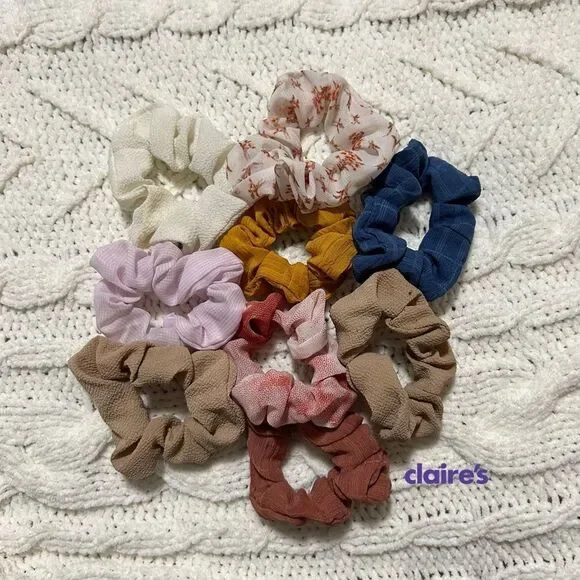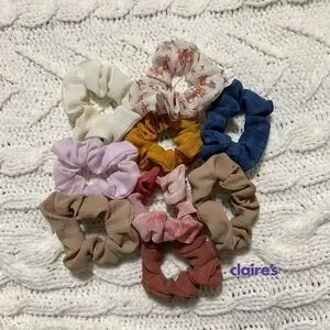Crepe Material Scrunchie Bundle! Comes with 9 small sized crepe scrunchies. NEVER WORN. 2.5 x 2.5 in each 🎀