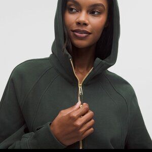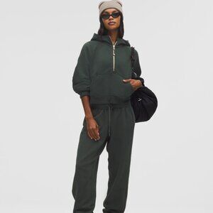 Serious about softness. This half-zip hooded sweatshirt is all about fleecy fabric and pairs perfectly with our Scuba sweatpants. Color is Rainforest Green/Gold. Size M/L. New!