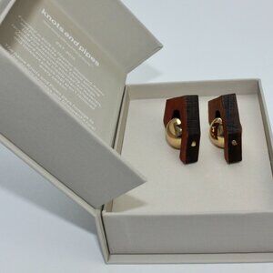 Statement Mid Century Modern Earrings. Unique sculptures made out of wood and gold. Post earrings with butterfly backing. Earrings measure approximately 4 cm long x 3.5 cm wide.