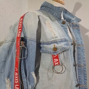 Se7en| Boyfriend Jeans Jacket Oversized Destroyed Zipper Color Gradient Cracks