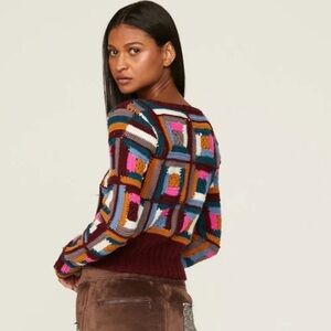Sea New York Camryn Crochet Patchwork Wool Sweater S *Rare*